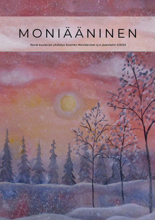 Moniäänisessä on juttuja äänien kuulemisen ilmiöstä, ääniä kuulevien ihmisten selviytymistarinoita sekä tietoa yhdistyksen toiminnasta. Otamme mielellämme vastaan julkaistavaa materiaalia ja juttuideoita jäseniltämme ja muilta, joita äänien kuuleminen koskettaa. Moniääninen ilmestyy neljä kertaa vuodessa. Saat lehden kotiisi liittymällä yhdistyksen jäseneksi.